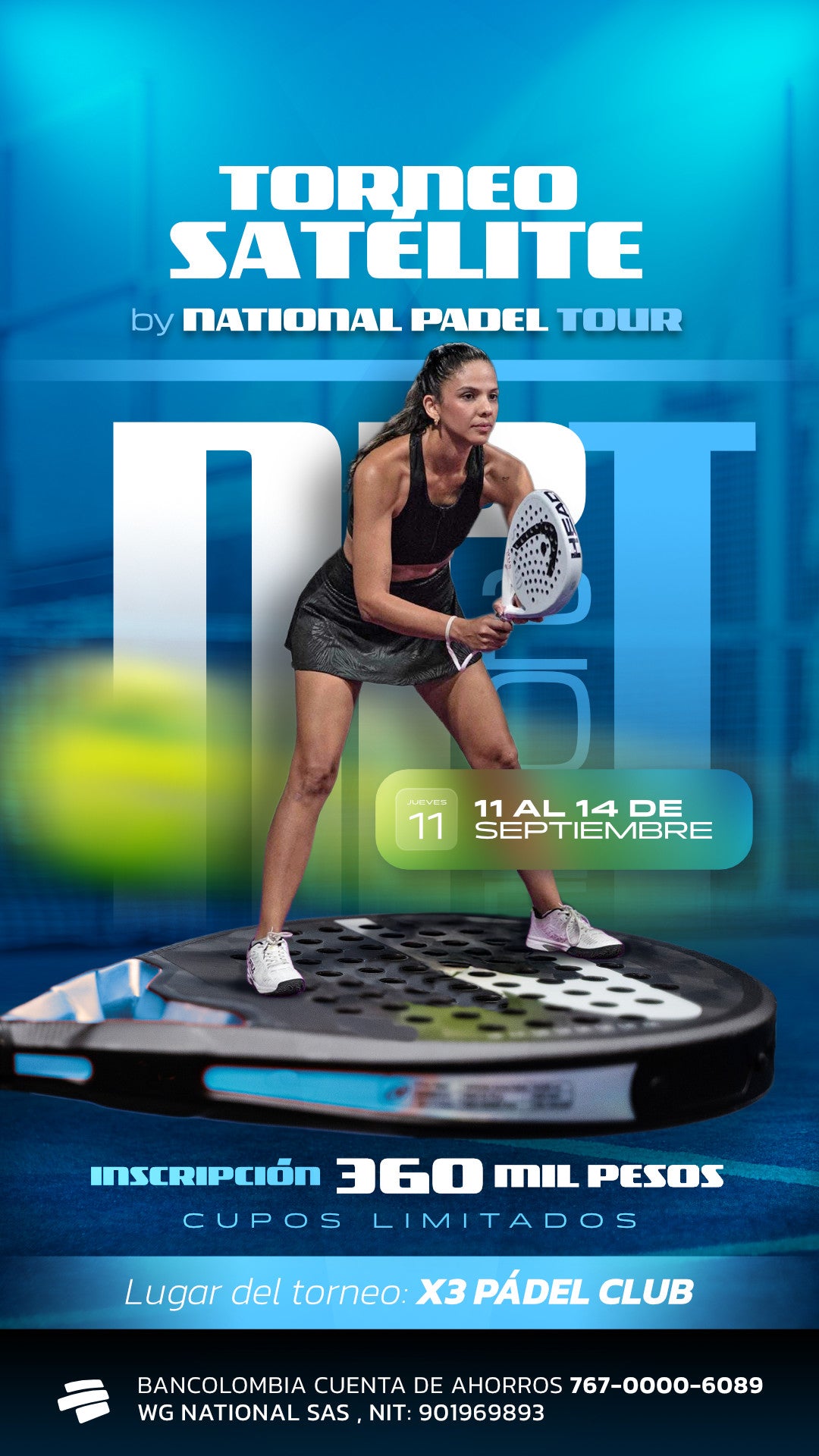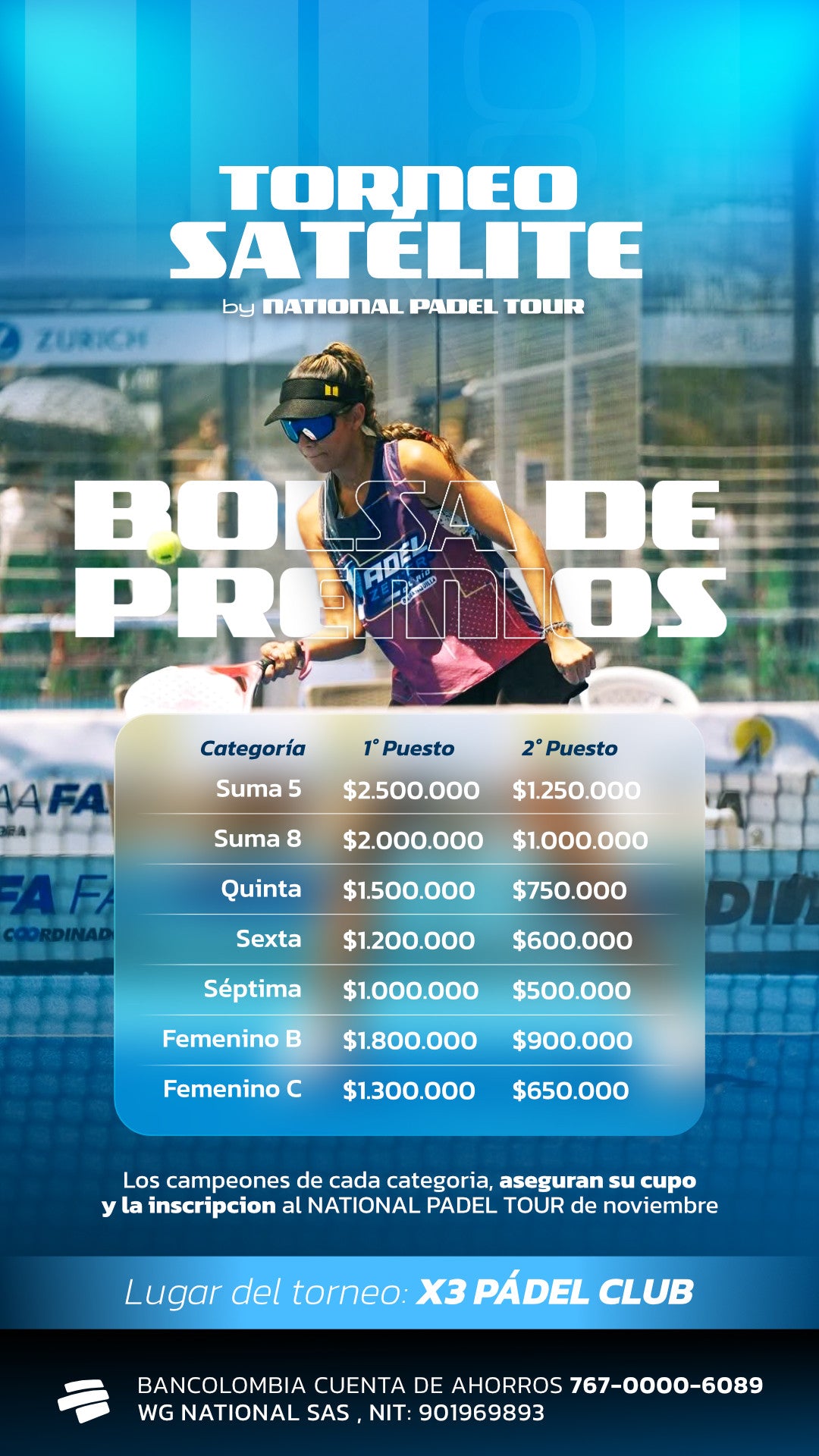 Cualquier duda o inquietud contactanos al WhatsApp 301 197 0667, o por nuestro instagram @nationalpadeltour.co